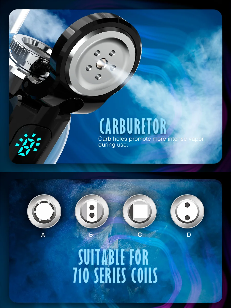 The Dragon Egg Portable E-Rig uses Lookah 710 quartz dish coil Type C, designed to deliver unparalleled flavor, fast heating, wax saving, big clouds, and exceptional durability.