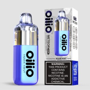 OiliO Meteor Refillable POD is a new disposable vape with dual mesh coil, pre-filled with 13ml e-juice, 3.5% salt nic strength, 3.5K puffs, 500mAh battery, usb-c charging port, and clear vape tank that offers a comfortable and easy-to-use vaping experience.